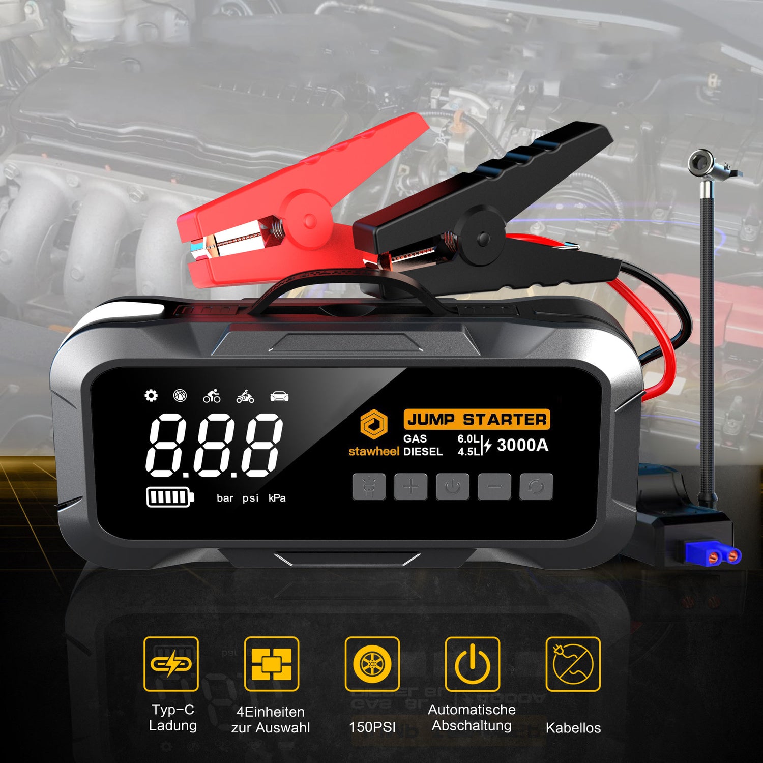 Starthilfe mit Luftkompressor